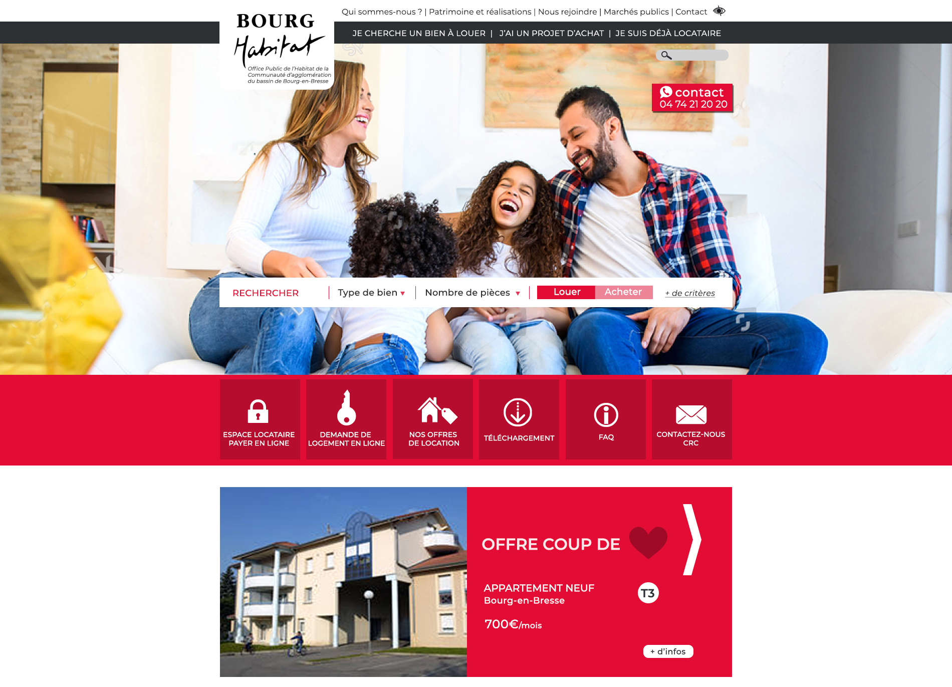 Ce site internet très fonctionnel dispose d'un double menu, dont un adapté au profil du visiteur. L'outil central reste l'annuaire des biens à la location et à la vente, avec un outil de recherche simple et ergonomique mis en avant dès la page d'accueil, menant vers des fiches aux contenus enrichis (médias et carte intéractive) issus de la base de donnée du client.
