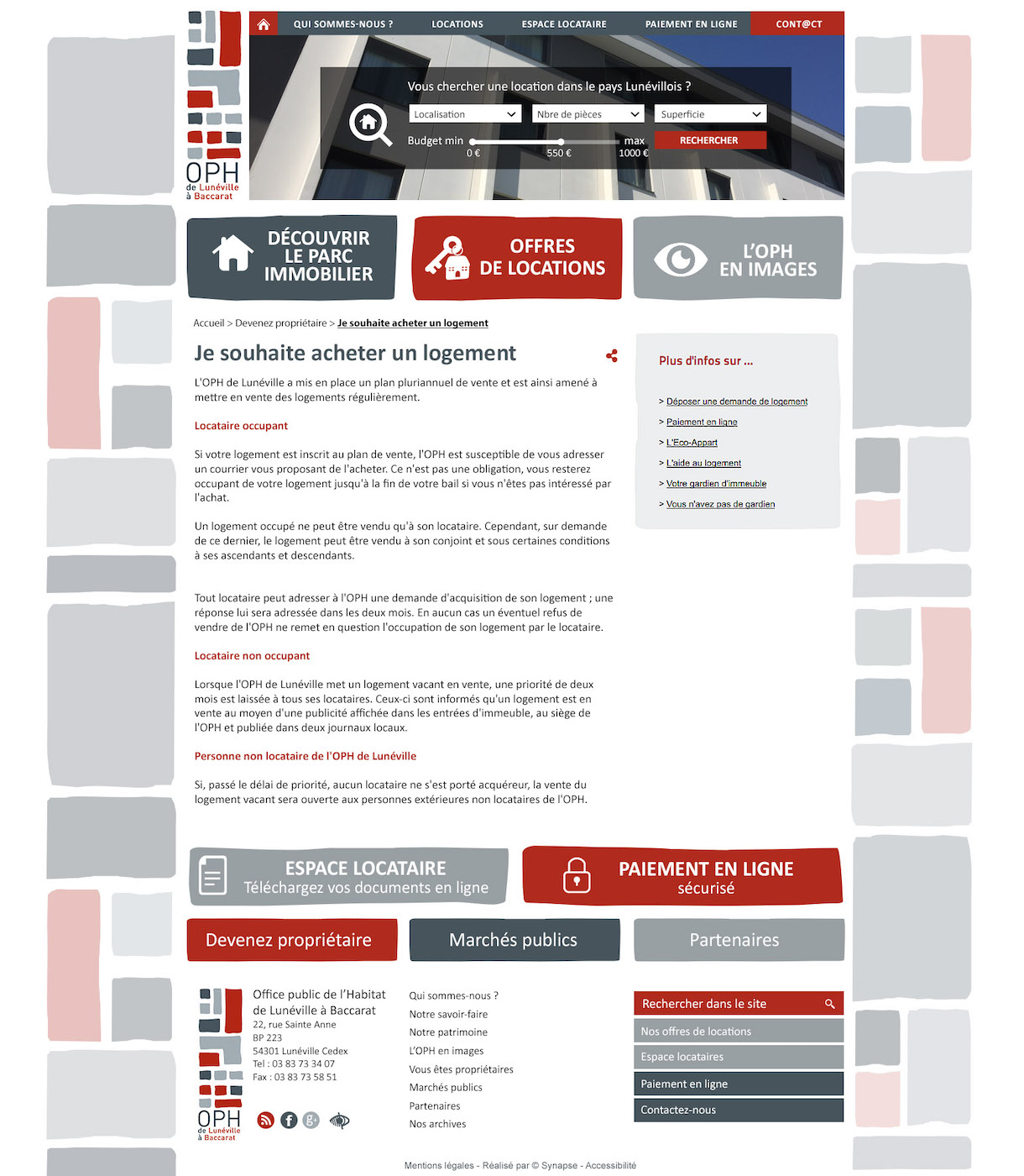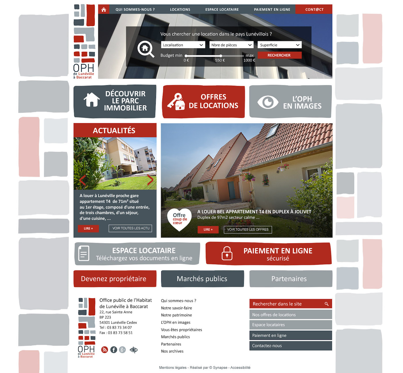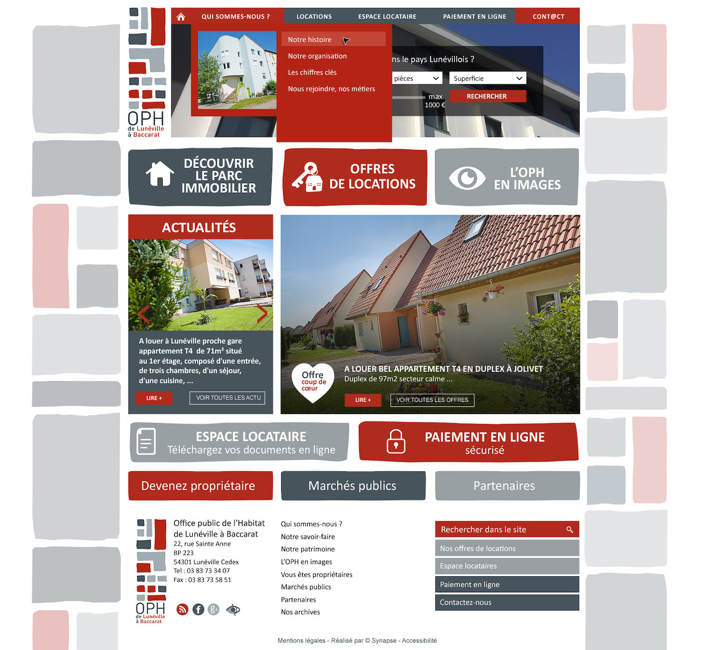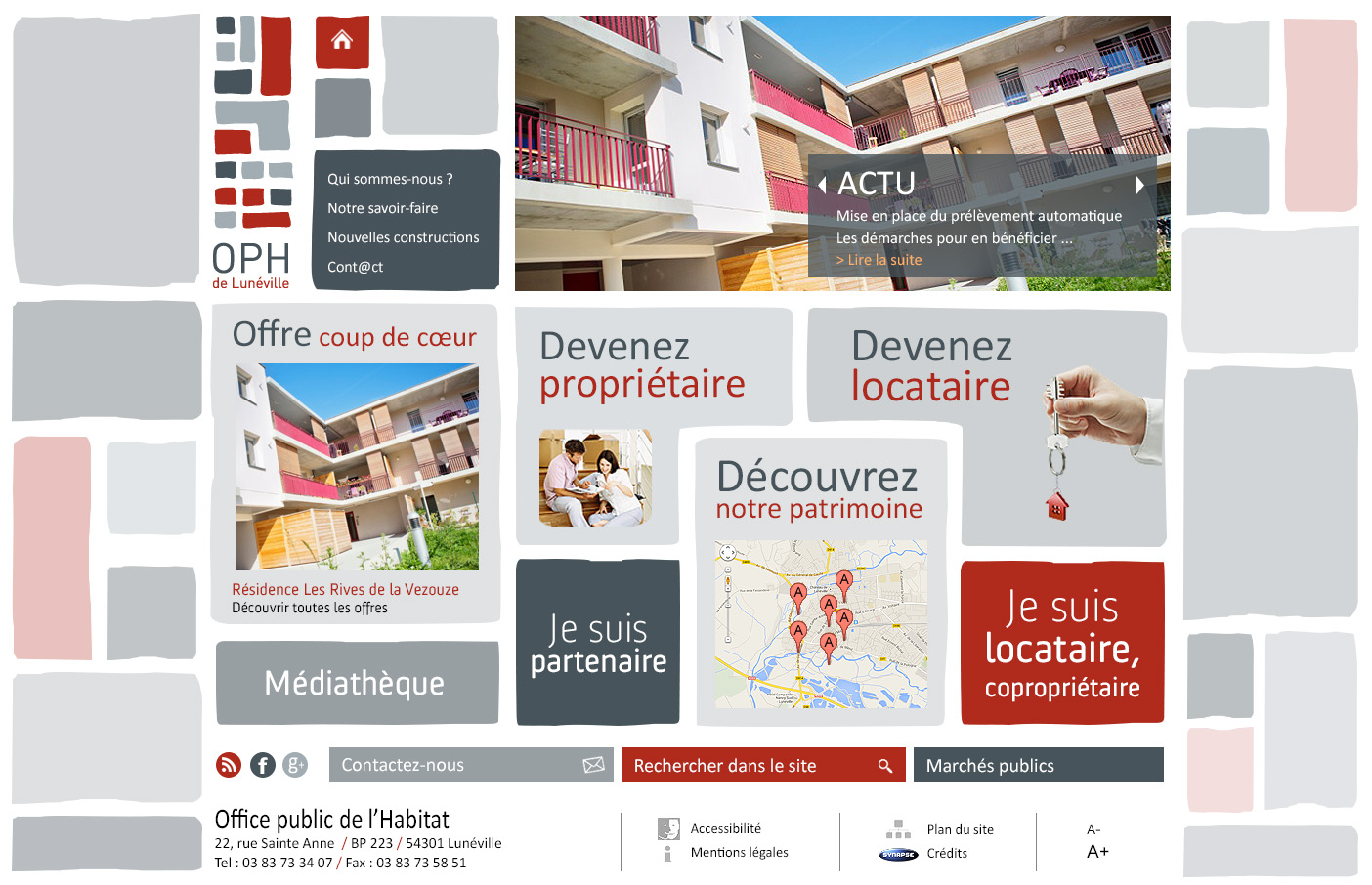 Ayant adopté une nouvelle identité visuelle (nouveau logo, nouvelle charte), l'OPH Luneville souhaitait refondre son site Internet pour le rendre plus attractif.