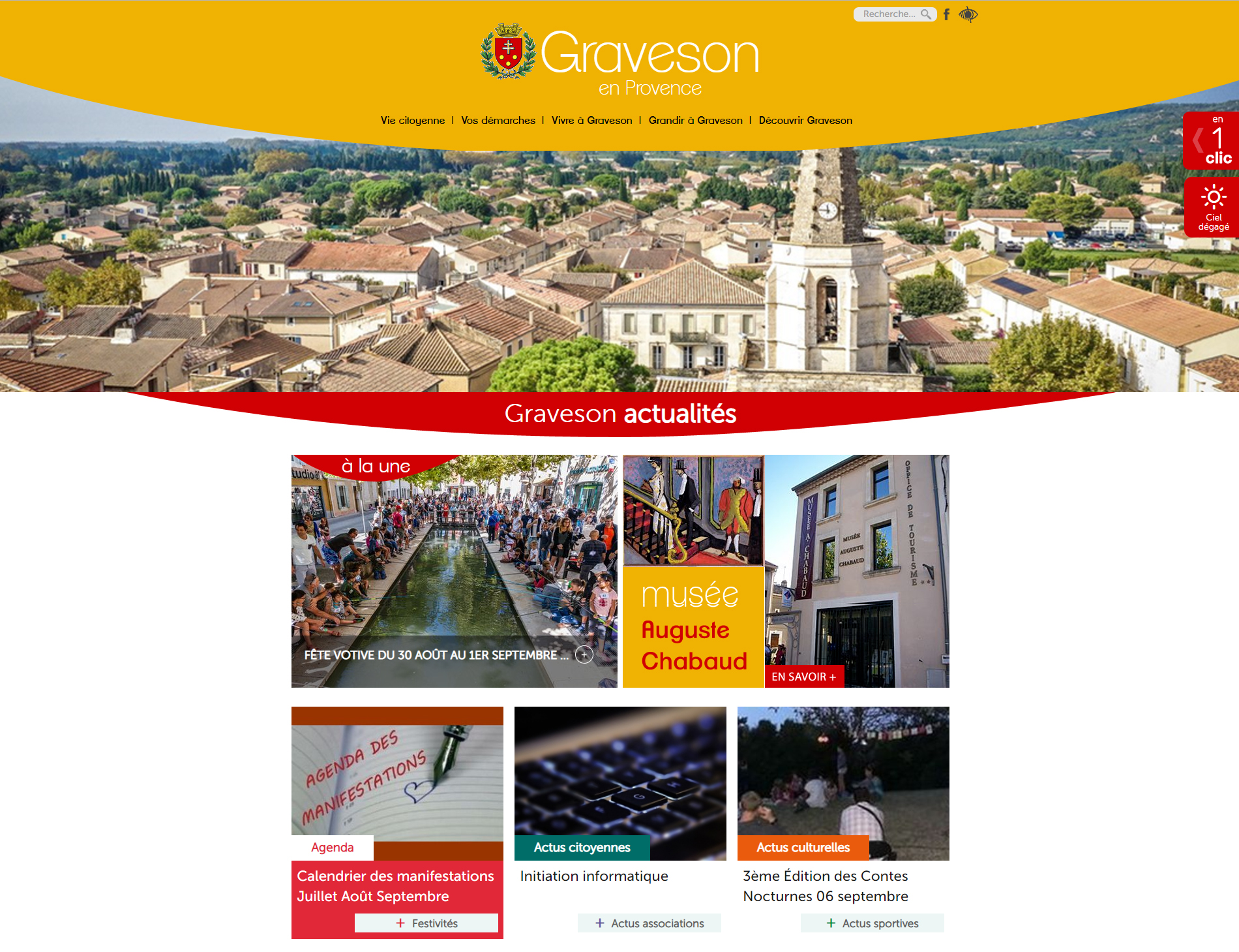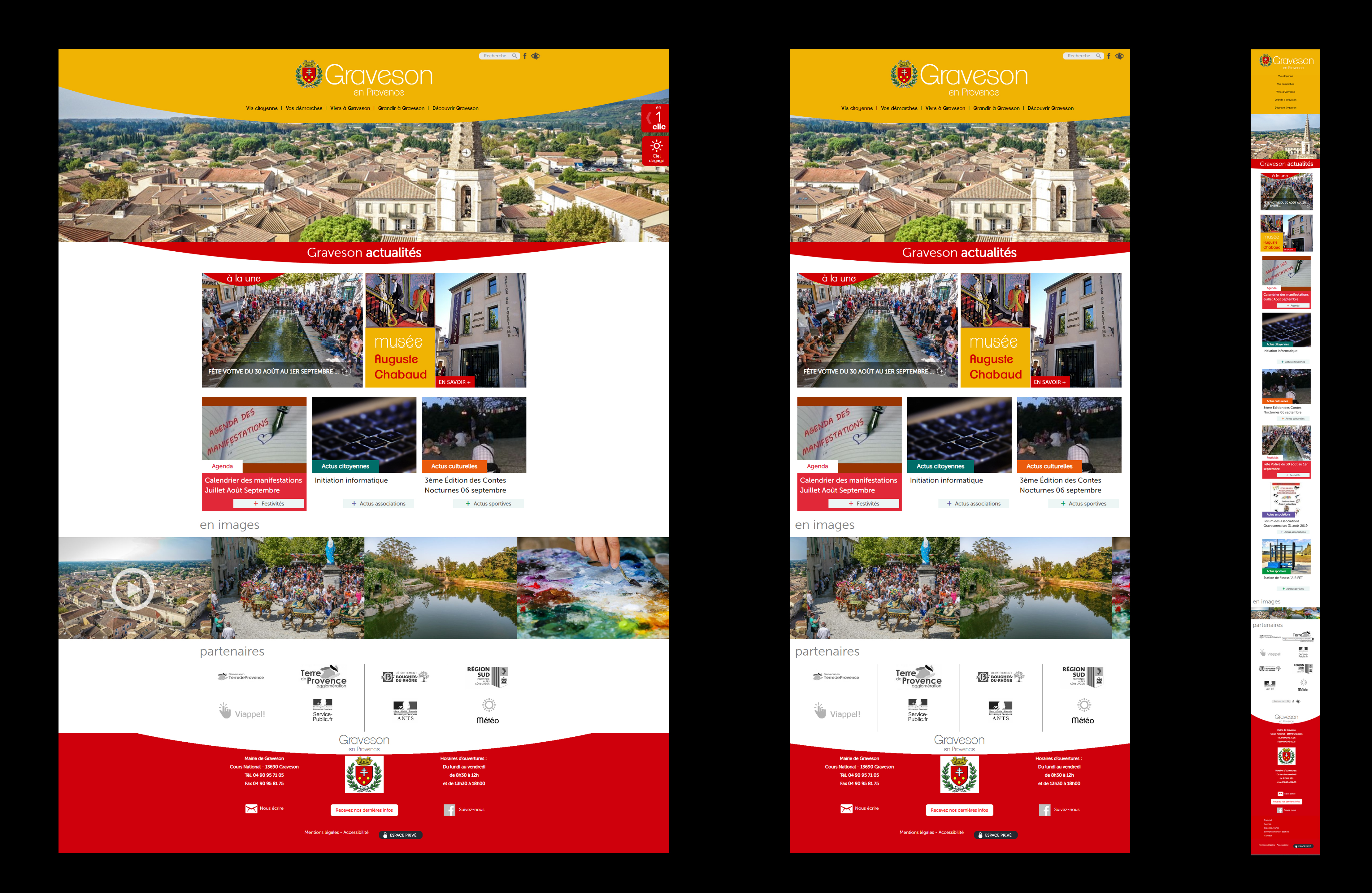 Créer une image dynamique dans les couleurs chaudes de la Provence en s'appuyant sur le blason. Un menu simple et complet pour accéder aux informations et des actualités nombreuses organisée par thèmatiques.